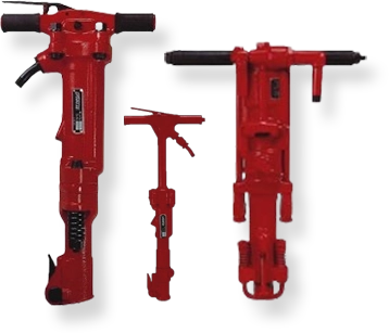 TOKU pneumatic rock drills for drilling in hard rock formations, concrete structures, and masonry construction.